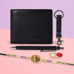 This gift combo contains: � A Shiva Rakhi by Rakhi Sutra (QUR8219Y) � Leather Travel Passport Holder (Brushwood, RFID Protected) � Complimentary Roli Tika N Chawal � Complimentary Message Card with Free Rakhi