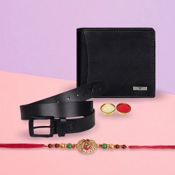 Surprise your brother with a gift that combines elegance and practicality! The AD Kundan Rakhi paired with a stunning Leather Passport Holder in a fashionable Croc Blue design makes for an unbeatable duo. This gift set is not just beautiful but functional. The RFID protection in the passport holder ensures that your travel details remain secure on all your adventures. Alongside this stylish accessory, the set features an exquisite Kundan Rakhi from Rakhi Sutra, symbolizing love and tradition. This combo is complete with complimentary Roli, Tika, and Chawal, along with a personalized message card. And don�t forget the free Rakhi that adds a touch more love! Perfect for the brother who appreciates both style and security while traveling. Wrap your love in sophistication this festive season!