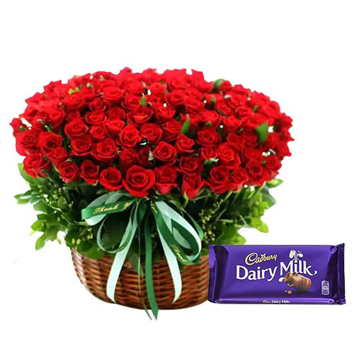 100 Exclusive Red Dutch Roses Arrangement with Cadburys Chocolate