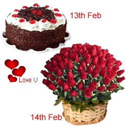 Serenade Option :13th Feb : 1/2 Black Forest Cake 14th Feb : 50 Dutch Red Roses Basket