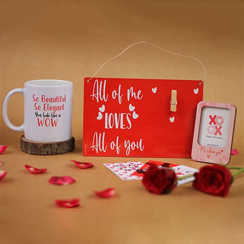 Get ready to experience a heartwarming surprise with our Heartwarming Valentine Surprise Gift Box. Unwrap joy as you discover a ceramic mug, clip frame, photo frame magnet, and three Valentine cards. Each item is designed to bring a smile to your face and create unforgettable memories. Whether as a gift or for your own enjoyment, this hamper is guaranteed to warm your heart. Get ready to experience a heartwarming surprise with our delightful hamper. Unwrap joy as you discover a ceramic mug, clip frame, photo frame magnet, and three Valentine cards. Each item is designed to bring a smile to your face and create unforgettable memories. Whether as a gift or for your own enjoyment, this hamper is guaranteed to warm your heart.