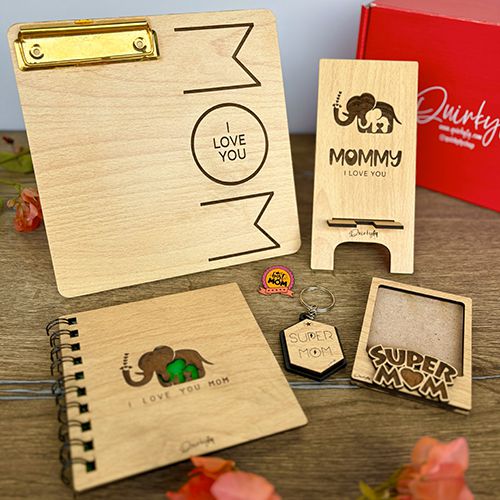 Elevate Moms everyday with our Exceptional Mothers Day Gift Set! Our Super Mom Polaroid Magnet Frame immortalizes her favorite memories, while the Mobile Stand offers convenience in style. The Pinewood MDF Keychain keeps her essentials close, and the Lapel Pin proudly showcases her superhero status. With the Pinewood MDF Diary, she can capture her thoughts with elegance. Completing the ensemble, the Picture Clip Plank adds a personal touch to her space, displaying her cherished moments. Thoughtfully curated and exquisitely crafted, this collection is a heartfelt tribute to Moms love, strength, and unwavering dedication. Give her the gift of admiration and appreciation with this extraordinary set that celebrates her every day.