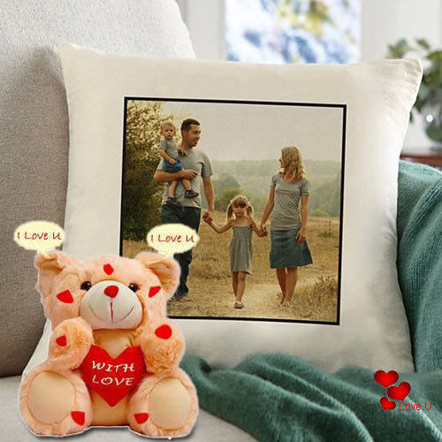 Send this delightful gift of Eye Catching Personalized Cushion with an I Love You Singing Teddy with unlimited love and best wishes.
