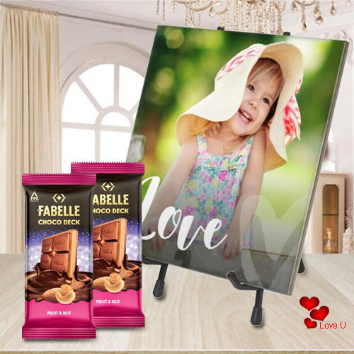 Convey your heartfelt wishes by gifting this Smarty Personalized Photo Tile (4x4 in) with Twin Bars of ITC Fabelle Fruit n Nut Chocolates to the people dearest to you.
