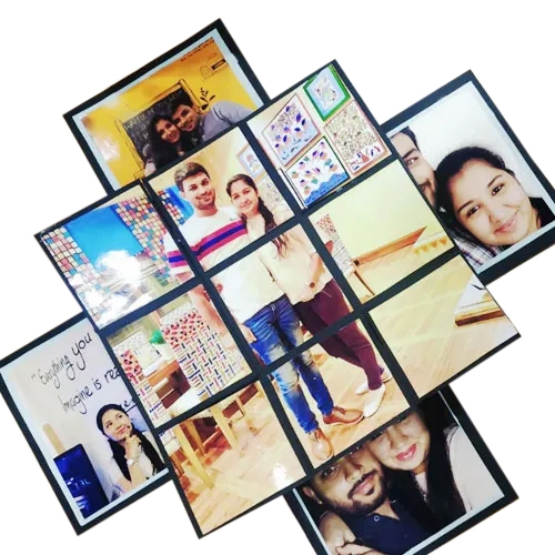 Surprise your special ones by sending this Special Personalized Photo Mosaic that will welcome into their hearts the breeze of love and joy. Details - a) It will showcase 17 Photos b) It is Foldable into a small square c) When opened, it turns out to be a big picture d) Has a Black Tinted Base Details Needed: 17 Nos. of Good Quality Images Please mail us the same with your order no. at [email protected] Delivery Time - 3 to 4 Working Days