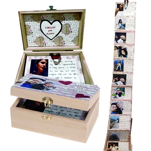 Enter into the heart of someone you admire by gifting this Exclusive Infinity Box of Personalized Message n Photos that wonderfully paves a way for you. Details are - a) It is a Theme based box b) Will contain 11 Messages and Picture Cards c) Box size will be 7 inchx 5 inch