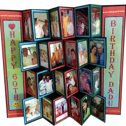 Render happy moments to your loved ones on their Birthday with this Amazing Zig Zag Card and frame it forever in your memory and heart. This Card is of 24 by 35 cm approx. Details Needed: We shall need 24 photos for making this product. Please send it to [email protected] with your Order Number; within 1 hour of placing the order Please Note: We need 4 to 5 working days to deliver this product