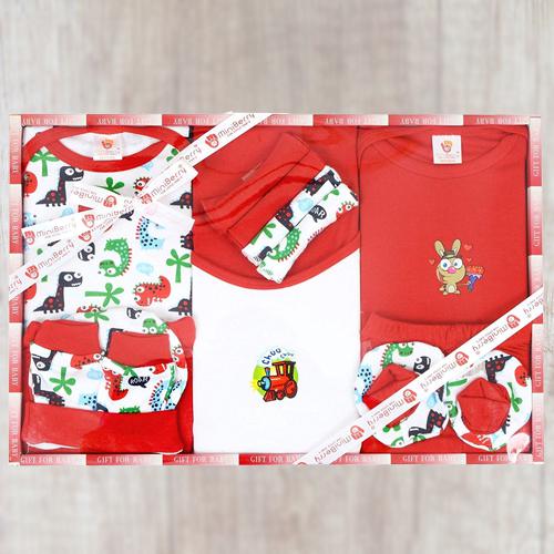 Love is best expressed by sending this gift of Marvelous Babys Gift Set of Cotton Clothes to your dearest child. The details are given below: 1. Items: 13 pcs Gift Set of Clothes 2. Age: Ideal for 0-6 Months 3. Color: Red 4. Fabric Type: Cotton