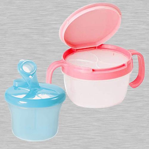 Celebration special wishes are best delivered by gifting this Amazing Food Storage Box N Spill-Proof Snack Catchers Bowl to your child. The details of the gift are: 1. Items: Portable Food Storage Box for Baby N 360 degree Rotate Spill-Proof Snack Catchers Bowl 2. Age Group: 12 Months+ 3. Color: Blue (Food Storage Box), Pink (Snack Catchers Bowl) 4. Material: Plastic 5. Other Features: Its BPA free and non-toxic