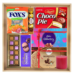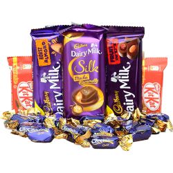 This luxurious Gift Basket is filled with � 11 pc Red Heart Assorted Homemade Chocolates � 18 pc Homemade Assorted Chocolates � 16 Pc Ferrero Rocher Chocolates � Small Cadbury Celebration Pack � Cadbury Celebration Assortment Pack (126 gm) � Danish Butter Cookies � Soan Papdi 8) Chocopie.