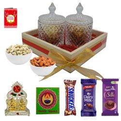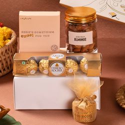This gift set brings a fusion of snack-time fun and comfort food cravings, starting with a Nachos Pack paired with Dip for a crunchy delight. It�s complemented by a Pasta Pack that�s quick to cook and full of taste, and a warm bowl of Knorr Soup to soothe the senses. The box also includes delightful Assorted Cookies to munch on, MTR Gulab Jamun Mix to create a mouthwatering dessert at home, and the zesty Haldiram Chanachur Mix to keep the spice levels up. A well-rounded treat for any food lover.
