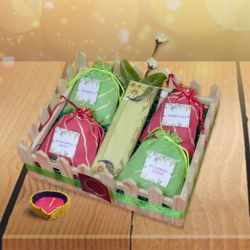 Create magical moments by ordering online this Captivating Holiday Bounty Basket of Breakfast Goodies for your loved ones and spread your warm feelings into their hearts. Make any occasion unforgettable with this Gift Hamper that features Haldiram Laddu (500 gm.), Haldiram Mini Samosa (250 gm.), Haldiram Chanachur (250 gm.), Haldiram Bhujiya (250 gm.), Ralli Singh Sharbat Rose (1 kg.), Haldiram Gulab Jamun (1 kg.), Haldiram Soan Papdi (1 kg.) and Haldiram Kaju Barfi (200 gm.).