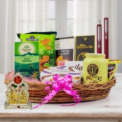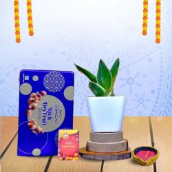 A perfect way to show your love, this Pretty Decorative Basket Hamper complemented will add an auspicious charm to the day. This Basket is loaded with Assorted Dry Fruits (200 gms), Haldiram Kaju Katli (200 gms), Haldiram Badam Lachha (200 gms) and Haldiram Methi Mathri (200 gms). There might be a slight change in the displayed design of Basket.