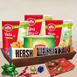 Convey your heartfelt wishes by gifting this Exclusive Gourmet Basket Hamper to the people dearest to you. This Hamper consists of- 1. Bottle of Fiesta Fruit Juice (340 ml) 2. Sapphire Chocolate Cookies (150 gm) 3. Malkist Crackers (138 gm) 4. Merba Imported Cookies (225 gm) 5. Salted Pistachios (200 gm) 6. Nutella (340 gm) 7. 1 Small Basket