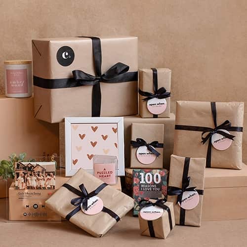 f) Personalized Pictures with Wooden Stand (7 Pictures and 1 message)