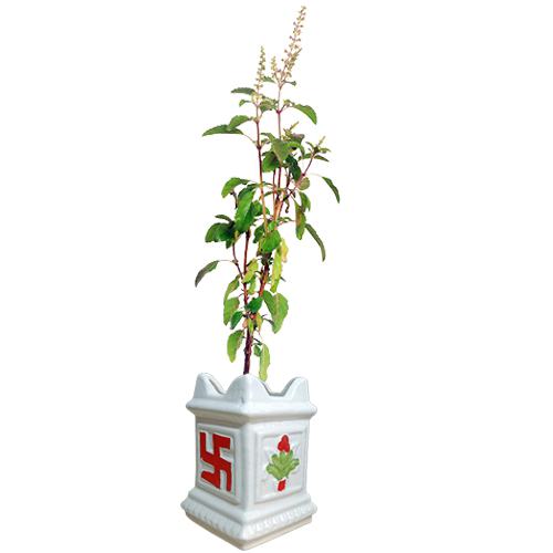 Impress your dear ones by sending this Holy Tulsi Plant in Ceramic Pot and elegantly brighten up their mood instantly. Plant Details: a) Product Content - Tulsi Plant b) Type - Medicinal Plant c) Plant Placement - Outdoor d) Plant Height - 3 to 7 inches e) Container - Ceramic Pot