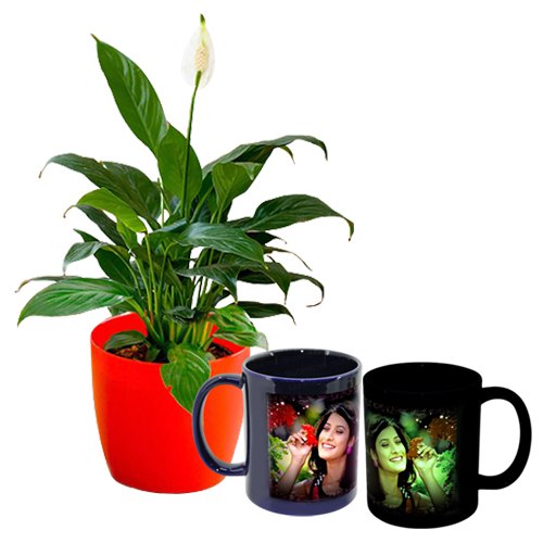 Send this perfect gift of Evergreen Air Purifying Peace Lily with Personalize Radium Mug, especially for him/her. Product Details: a) Peace Lily plant b) Personalize Radium Mug