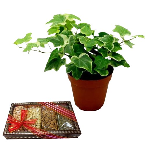 Surprise your loved ones with this Air Purifying English Ivy Plant with Assorted Dried Fruits and stay forever in their hearts. Product Details: a) English ivy b) Assorted Dry Fruit (800gm)