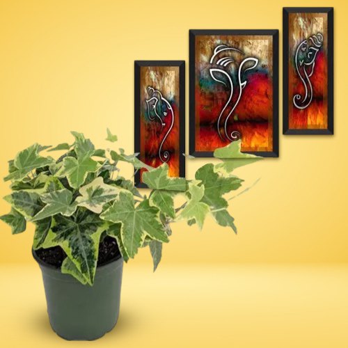 Order this Air Purifying English Ivy Plant n Ganesha Art Duo and make your dear ones happy. Product Details: a) English ivy b) Ganesha Modern Art for Home Decor