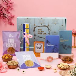 Delight your sibling this Raksha Bandhan with a thoughtfully curated gift set that includes 2 elegant Rakhis symbolizing love and protection. Accompanying the Rakhis is a gourmet dry fruits tray filled with premium Turkish apricots (200 g), salted pistachios (200 g), dried strawberries (200 g), and rich chocolate-coated almonds (200 g), perfect for sharing and savoring together. To add a personal touch, a complimentary Rakhi card is included to pen down your heartfelt message. The gift is completed with free Roli, Tilak, and Chawal, essential for the traditional Rakhi ceremony, ensuring you perform the rituals with complete authenticity. This gift set blends the sweetness of dry fruits with the sacredness of Rakhi rituals, making your celebration truly memorable.