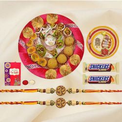 This rakhi gift pack contains: � Set of 2 Ethnic Zardosi Rakhi � A Black Leather Wallet for Men from Rich Born � 16 pc Ferrero Rocher Moments Chocolates � Free Roli Tika n Chawal � Free Rakhi Card with personalized message