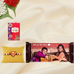 For the wonderful Raksha Bandhan, grab this Drooling Personalized Choco N Fancy Rakhi complemented with a free Rakhi, Roli, Tilak and Chawal to gift your loveliest siblings or dear ones. This Rakhi Chocolate gift pairing holds 1. Personalized Photo Cadbury Silk Chocolate (60 gm) 2. Almond Potli (100 gm) 3. A Premium Rakhi 4. Free Rakhi, Roli Tika N Chawal