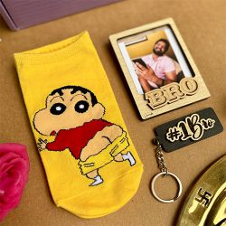 Make Raksha Bandhan extra special with a gift hamper that speaks from the heart. This exclusive set includes a delectable 60 gm personalized Cadbury Silk chocolate with a photo that adds a heartfelt personal touch. It comes with a 100 gm Almond Potli, brimming with crunchy, handpicked almonds to make the occasion healthy and festive. A premium Rakhi enhances the festive spirit, reflecting the strength and beauty of your sibling bond. Also included are complimentary Rakhi essentials � Roli, Tika, and Chawal � ensuring your Rakhi rituals are complete. Celebrate your sibling with a unique blend of tradition, taste, and emotion.
