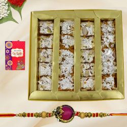 Wish the best of happiness and health for your dearest brother or dear ones this Raksha Bandhan with this Delightful Sweetness n Fancy Rakhi that is combined with your love. This rakhi sweets delight holds a box of 4 pc each of Kaju Pan, Milk Cake, and 5 pc each of Kaju Katori, Dilkhushal, A Fancy Rakhi and Free Rakhi, Roli Tika N Chawal included.