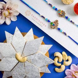 This gift set has: � Assorted Sweets (500 gms) � A Fancy Rakhi � Cadbury Celebration gift Box (50g) � Almond Potli (100g) � Bhujia � Free Rakhi, Roli Tika N Chawal, Card included