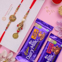 Designer Stone Rakhi with Cadbury Dairy Milk Chocolate