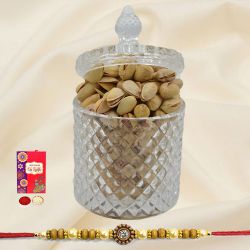 This gift set has: � Mawa (250 gms) � Cashew (100 gms) � Almond (100 gms) � A Bhaiya Bhabhi Rakhi Set � Roli & Chawal