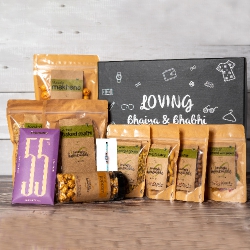 � 3 pcs Crispello Chocolates 13g � A Yoga Bar Apricot Fig 50g � A Snickers Bar 22g � A Cadbury Fuse Chocolate 24g � A Twix Chocolate Bar 50g � A Cadbury 5 Star 3D Chocolate Bar 42g � A Nestle Munch Chocolate Bar 10.1g � A Mars Chocolate Bar 51g � A Cadbury Dairy Milk Fruit n Nut Chocolate Bar 36g � A Cadbury Celebrations Mini 59.8g � Complimentary Roli Tika Chawal � A Free Message Card