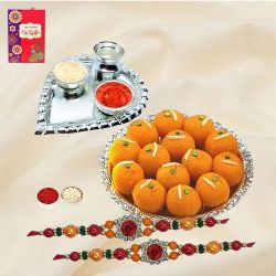 Silver Plated Rakhi Pooja Thali with Ganesh Laxmi Idol