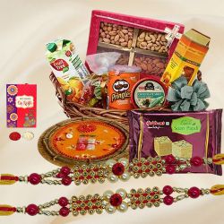 As an extra special touch, we have included a complimentary Rakhi with Roli Tika N Chawal. This traditional set consists of a beautiful Rakhi thread, Roli (red vermillion powder), Tika (saffron paste), and Chawal (rice grains). These essential elements allow you to perform the sacred Rakhi tying ceremony with utmost devotion and love.