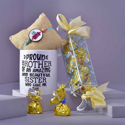 Make Raksha Bandhan extra special with this vibrant and heartfelt gift set featuring a designer Veera Rakhi (DFRK1420P) made of multicolor beads that represent the joy and color of sibling love. Perfect for a cherished brother, this Rakhi is accompanied by a 101g pack of Hershey�s Kisses Chocolates to bring a smile to his face. The addition of a lush Aglaonema Lipstick Plant in a stylish pot adds a touch of freshness and long-lasting memory to the occasion. Also included are the essential Rakhi puja items�Roli, Chawal, and Tika�to complete the traditional rituals. A complimentary message card lets you convey your love and blessings in words, making this gift a thoughtful and complete celebration.