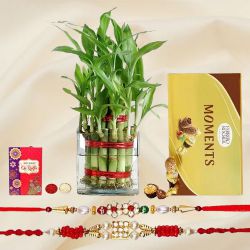 Express your affection this Raksha Bandhan with a beautifully designed Bhaiya Bhabhi Zardosi Rakhi set (BBVL2509). Featuring intricate Mauli and Zari work accented with colourful beads in vibrant hues, this multicolour designer set perfectly celebrates your brother and sister-in-law. The gift includes a sumptuous 440g Sapphire Truffle Selection Coconut Chocolate pack to delight their taste buds with creamy coconut richness. Traditional Roli, Tika, and Chawal complete the set, ensuring your sacred rituals are honored, while the free message card adds a warm personal touch to your heartfelt wishes.