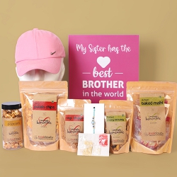 Mark the special bond of Rakhi with a gift that speaks of tradition, love, and care. This elegant set includes a finely crafted Rakhi (Design Code: PRRK7948) paired with a generous 500g pack of crunchy, handpicked cashews. Completing the festive essentials is a Roli Tika and Chawal Thali, thoughtfully included to uphold the rituals. Everything is tastefully presented in a decorated tray and packed inside a premium, reusable Signature Outer Box�making it a perfect expression of your heartfelt wishes.