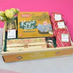 Make Raksha Bandhan extra sweet and fun for the little ones with this vibrant and chocolate-filled hamper crafted just for kids. It features two adorable Kids Rakhis (Design Codes: SAJSPM2405 and SAJIRM3207) along with a delightful assortment of their favorite treats. From the nutty goodness of Bounty and Dairy Milk Fruit & Nut to the crispy crunch of Nestle Munch, Perk, and Dairy Milk Crackle, every bite is a burst of joy. The hamper also includes KitKat Dessert Delight, a Mini Celebrations pack, 8 pieces of Ferrero Moments, and a smooth Dairy Milk Silk bar for an indulgent finish. A traditional roli and chawal thali adds the festive touch, all beautifully arranged on a tray and presented in a reusable signature outer box�perfect for creating sweet memories and smiles.