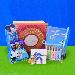 Make Raksha Bandhan magical for your little one with this exciting Mickey Mouse Rakhi hamper, packed with all-time favorite treats. It includes delicious chocolate bars like KitKat, 5 Star, 3D 5 Star, Bounty, Munch, and Milky Bar, along with fruity candies like Fruitella and Mentos. For a nostalgic twist, there�s a splash of Dairy Milk and the irresistible Cadbury Gems. With a vibrant Mickey Rakhi and traditional Roli Chawal Tika, all elegantly packed in a gift box, this hamper is the perfect blend of tradition and indulgence.