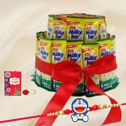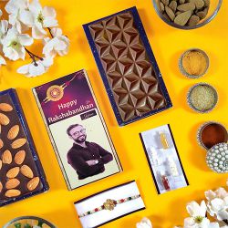 Let your dearest ones indulge in the best Raksha Bandhan celebration of their lives by gifting them this Divine Rakhi Set N Chocolate Delight that is wrapped along with a free Rakhi, Roli, Tilak and Chawal complemented with your love.