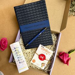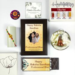 This Raksha Bandhan, give your brother a thoughtful blend of tradition and creativity with this unique gift combo. It includes a Kundan Rakhi by Rakhi Sutra (KPRK8120), adorned with timeless detailing to symbolize your lasting bond. The highlight of this set is the Moving Sand Art showpiece�a soothing and artistic addition to his desk or room, bringing peace and visual delight. With complimentary Roli Tika and Chawal for the ceremony and a message card to pen your heartfelt wishes, this rakhi set perfectly combines love, elegance, and artistic charm.