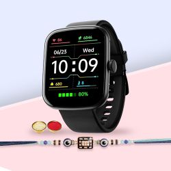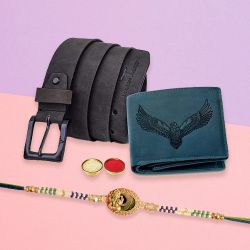 Immerse in the festive spirit of Raksha Bandhan with this Auspicious Ganesha Rakhi N Treats Hamper. This thoughtfully arranged gift includes a divine Ganesha Rakhi by Rakhi Sutra, symbolizing protection and blessings. Accompanying the Rakhi is a charming Vignesh Ganesh idol, ideal for home d�cor or pooja. Relish the taste of tradition with the included Kesar Laddus (500g), and enjoy the nutritious offerings of Pistachios (100g) and Almonds (100g). The hamper is elegantly complemented with a Silver Plated Bowl and a Golden Plated Thali, adding a touch of opulence to your Rakhi rituals. To top it all off, a Silver Coin is included, making this hamper a truly deluxe offering for your beloved brother.