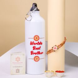 Celebrate the divine bond of Raksha Bandhan with our Auspicious Ganesha Rakhi Gift Set. This beautifully crafted gift set includes a stunning Ganesha Rakhi by Rakhi Sutra (PDGRKA455), symbolizing wisdom and prosperity. The set also features a Vignesh Ganesh idol, perfect for adding a touch of spirituality to your celebrations. To add sweetness to the festivities, we�ve included delicious Kesar Laddu, made with the finest ingredients for a rich taste. Completing the hamper is a Golden Plated Thali, elegantly designed to be used in the Rakhi rituals. This thoughtful combination ensures that all aspects of the festival are covered, making your Raksha Bandhan celebrations truly memorable. Perfect for brothers and sisters alike, this hamper is a blend of tradition, devotion, and sweetness.