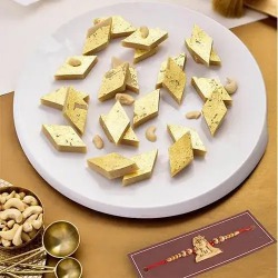 This is a gift of: � A Floral Kundan Rakhi by Rakhi Sutra (SAJ2713) � Soan Papdi (200g) � Complimentary Roli Tika N Chawal � Complimentary Message Card with Free Rakhi