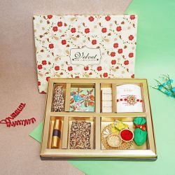 Our Designer Kundan Rakhi N Gulab Jamun Delight is the perfect way to convey your heartfelt emotions this Raksha Bandhan. The Kundan Rakhi by Rakhi Sutra (SAJ2907) radiates elegance and tradition, ensuring it will be cherished for years to come. Paired with 500g of mouth-watering Gulab Jamun, every bite is a memory made sweeter. Enhancing the ritual, we provide complimentary Roli Tika N Chawal, along with a heartfelt message card to add your personal touch. Embrace the joy of giving and let the essence of this delightful gift set make the occasion truly memorable.