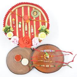 This is a gift of: � Set of 2 Kundan Rakhi by Rakhi Sutra (PRRK8089Y, DFRK7610) � Kesar Peda (100g) � Complimentary Roli Tika N Chawal � Complimentary Message Card with Free Rakhi