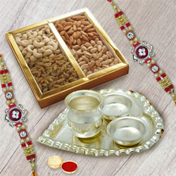 Silver Plated Rakhi Pooja Thali with Ganesh Laxmi Idol