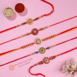 This is a gift of: � Set of 5 Kundan Rakhi by Rakhi Sutra (DFRK0734, DFRK0735, SAJ2713, SAJ2719, SAJ2907) � Complimentary Roli Tika N Chawal � Complimentary Message Card with Free Rakhi