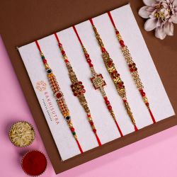 Make this Raksha Bandhan memorable with our Set of 4 AD Rakhi, crafted by Rakhi Sutra. Each Rakhi tells its unique story through stunning designs and embellishments. Perfectly tailored to celebrate your special connection with your brothers, these Rakhis add a touch of elegance to this traditional occasion. Included with your purchase are complimentary Roli Tika and Chawal, essentials for the Rakhi ceremony. Plus, a personalized message card allows you to express your feelings just right. No matter the distance, these Rakhis are a lovely way to keep your sibling bond strong.