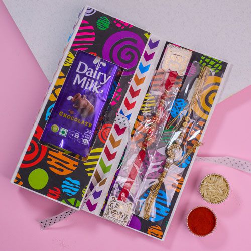 Designer Stone Rakhi with Cadbury Dairy Milk Chocolate